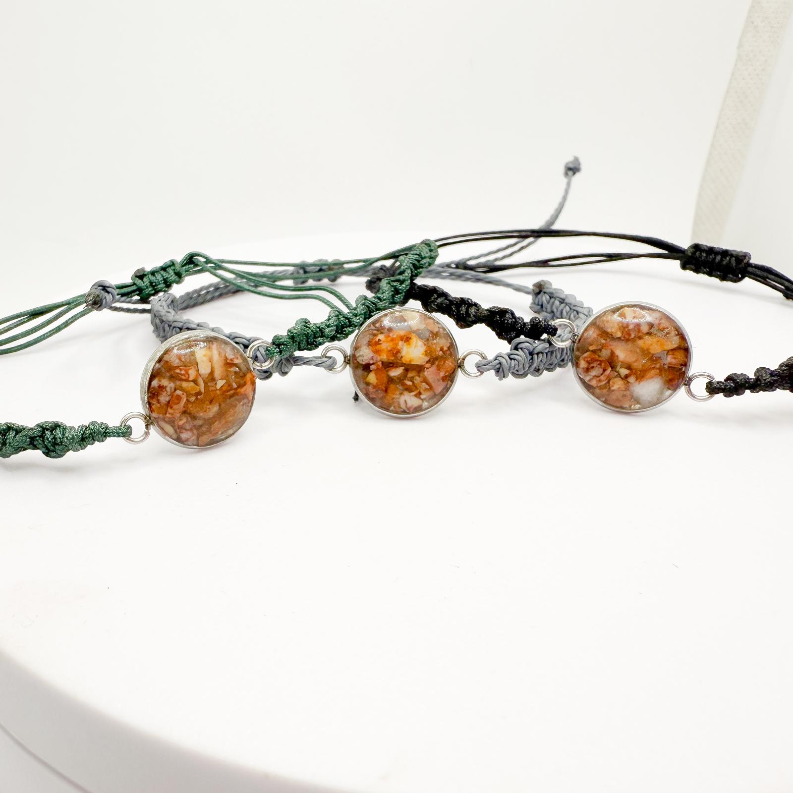 Esta pulsera está elaborada con la auténtica piedra de la Cinta, un tesoro natural que solo se encuentra en Tortosa y que representa la esencia y la tradición de nuestra tierra.