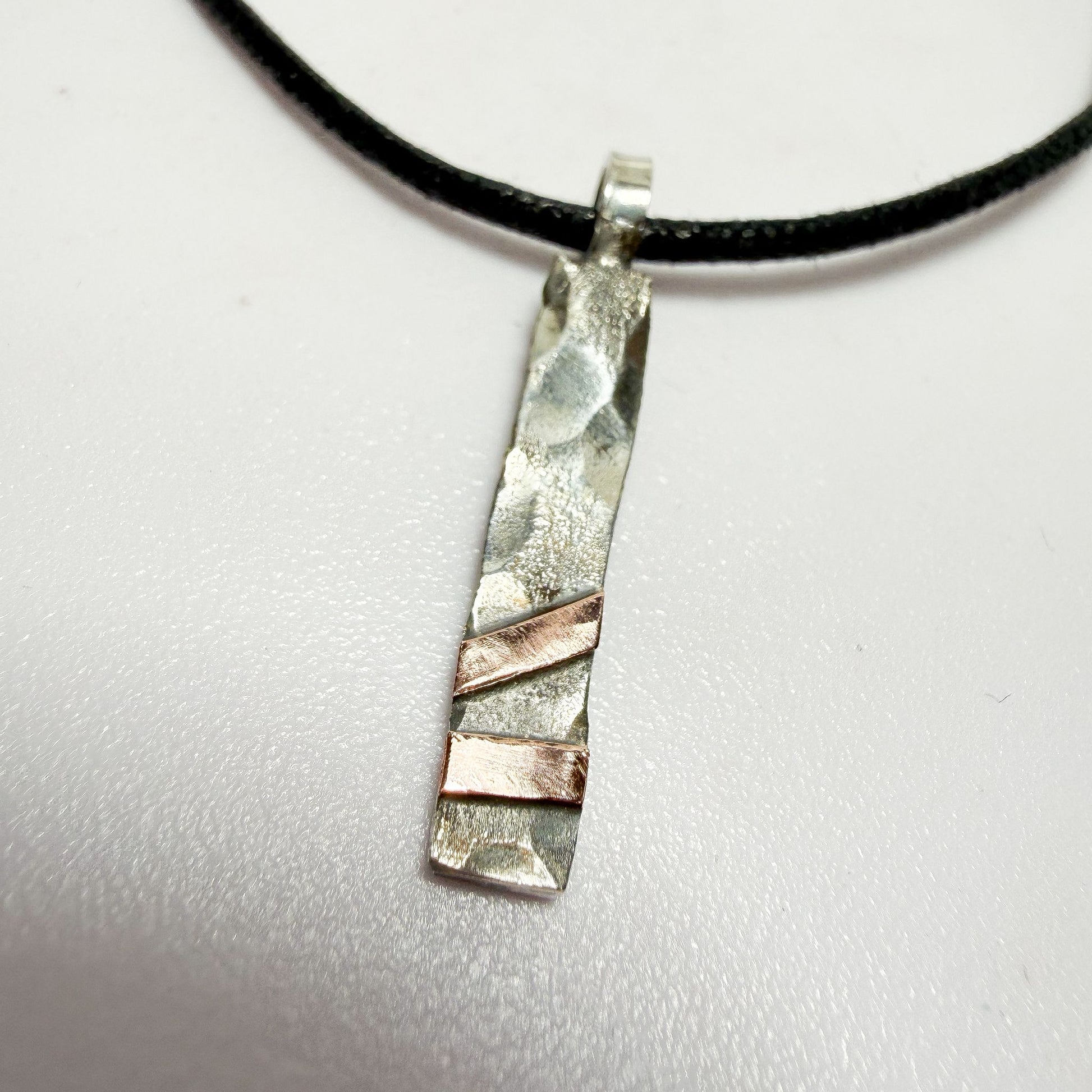 Colgante masculino de plata de ley 925 con diseño vertical y estética contemporánea. La superficie presenta una textura martillada artesanal que aporta carácter y refleja la luz de forma sutil, resaltando la autenticidad de la pieza.